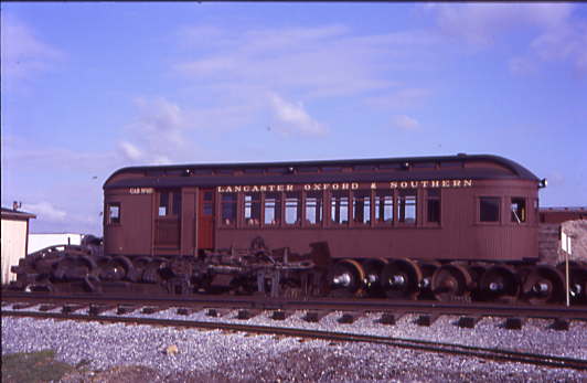 Lancaster, Oxford and Southern Car motor car 10. is the last remaining piece of rolling stock from that long-forgotten little railroad and is believed to be the only piece of its kind built by the Sanders Machine Shop of Havre de Grace, Maryland. Sometime after 1919, the car was sold to the Grasse River Railroad in New York State where it remained until 1960. That year, the motorcar was sold to Winston Gottschalk of the Strasburg Rail Road. After a second full restoration between 1991 and 1997, the car re-entered revenue passenger service and has remained in service ever since.