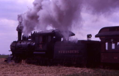 I noticed a different locomotive coming towards me; it was Strasburg 0-6-0 31 which was pulling the late afternoon passenger trains.