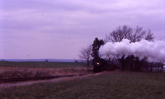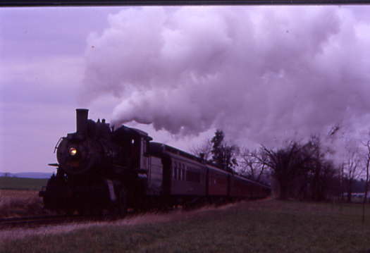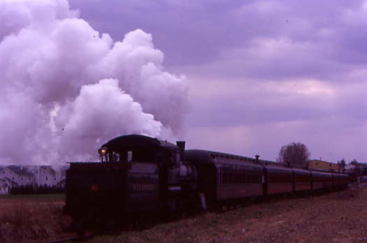 Great Western 90 returning to Strasburg, after which it ran around its train to lead one more trip on this cold and windy day