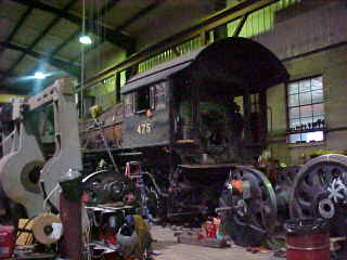 Strasburg 4-8-0 475, nee Norfolk and Western 475 built by Baldwin in 1906, was undergoing restoration.