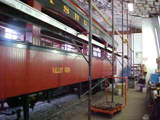 After the car shop, we walked over to the restoration shop where we found 99 "Valley View", ex. Boston and Maine W3145, nee Boston and Maine 1313 built by Laconia in 1910 and acquired in 1972.