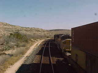 We continued toward Tornillo siding where another Union Pacific freight waited for us.