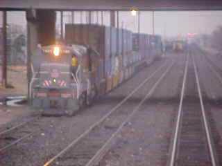 The offending freight train finally passed us in the trench under downtown.
