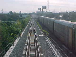 Our train curved off the middle of the freeway, but ran next to the busway by Metrolink's Cal State Los Angeles station.