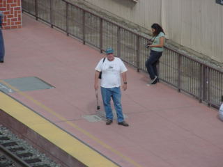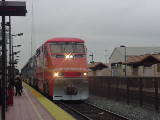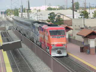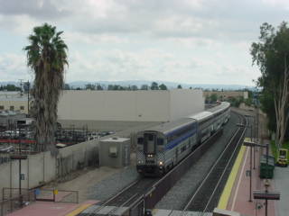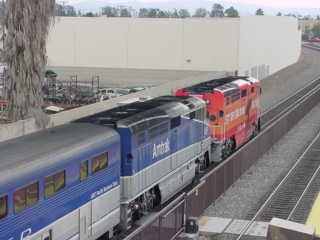 I walked towards the station in the light rain as the train departed on time then crossed the bridge and waited for Pacific Surfliner 565 to arrive, which I boarded for Los Angeles. I listened to the new Queen and Paul Rodgers' CD "Cosmos Rocks" as we made our way north. I called Chris Parker, who was at Philippe's, and he ordered me an early lunch. I quickly walked over there and Chris was at the head of the line. We received our meals and enjoyed them in the train room, catching up on a few topics before we drove to Los Angeles Union Station and parked. I told him about Amtrak 455 and he decided to ride down to Santa Ana with me so he could ride back to Los Angeles and get his pictures there.