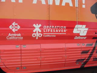 This locomotive is sponsored by Caltrains, California Operation Lifesaver and Amtrak California.