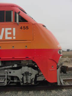 11/02/2008I saw on Trainorders.com that Amtrak had shrink-wrapped F59PHI 455, built by Electro-Motive Division in 1988, in a new Operation Lifesaver paint scheme. Knowing that I would run into it at some point, I decided to carry my camera with me until I saw it. Little did I know, but my wait would be extremely short.