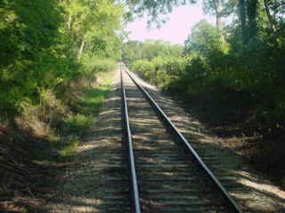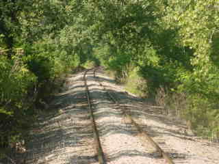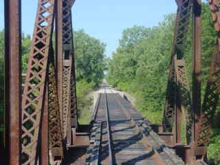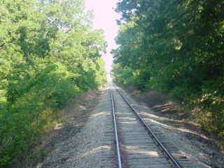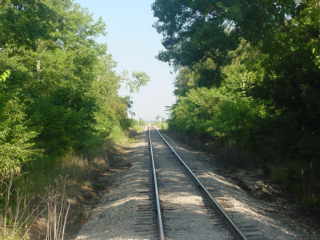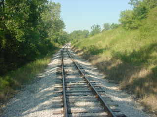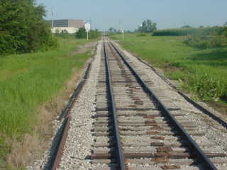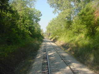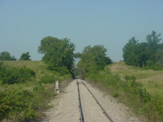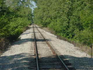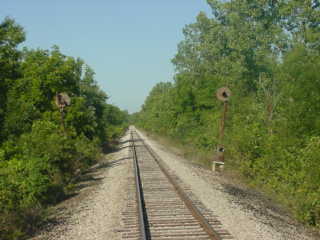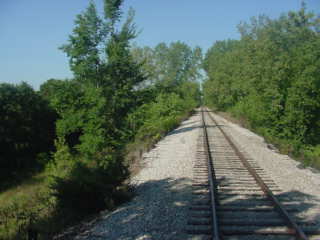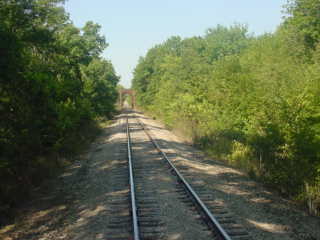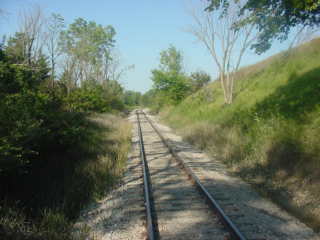 This is the location of the switch which took the former Rock Island mainline into a cut and and under Moulton Junction. This track was removed in 1993. We were now on the former Rock Island connecting track to the former Wabash Railroad.