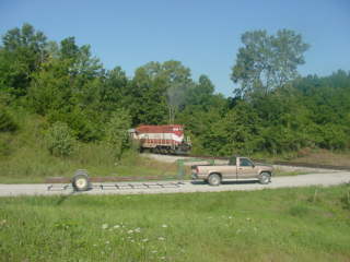 8/16/2008 I was up at 5:30 AM and after a quick breakfast, loaded the PT Cruiser and off I went north on US Highway 63 to Lancaster. I turned left on Missouri Highway 202 and in Glenwood, went by where the Wabash had a bridge over the road, which followed the old grade into Iowa as the road became Iowa Highway 202. I took that to Moulton, turned left onto Iowa Highway 2 which took me to Centerville, after I drove under the old Wabash line on the tracks we would be riding today. In Centerville, I turned left on Iowa Highway 5 and another left took me to a line of motive power in storage.