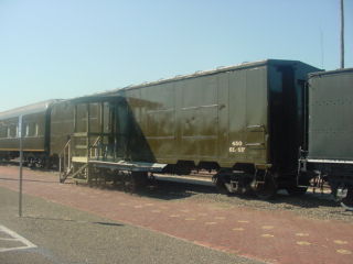 United States Army troop sleeper 9826 built by Pullman in 1944, one of 2,400 such sleepers to be built under contract by the United States Office of Defense Transportation. It was sold to the St. Louis-San Francisco Railroad and converted to an express car.