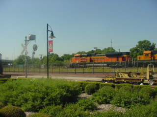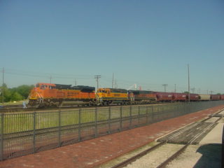 Back to Fort WorthChris and I drove back to Belton on Interstate 35 where we filled the car with petrol and bought some drinks and snacks. Just north of Moody, Texas, on Texas Highway 317, we caught a slow-moving BNSF coal train with two units on the point clawing up a hill with four more on the rear. It put on quite a show.