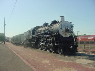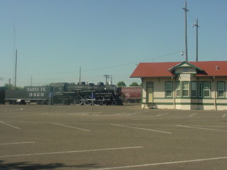 The bay window end of the depot and Santa Fe 4-6-2 3462.