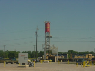 The BNSF cigar bend herald on this tower. We departed Temple after stopping at Best Buy then drove to Georgetown looking for the Georgetown Railroad and finally found it.