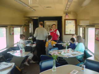 The two of us boarded "City of Chicago" and had table seats 17-18. I was served a Coca-Cola and waited for the trip to start then at 1:00 PM, it reversed into the wye before we pulled out onto the mainline.