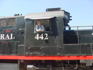 Austin Steam Train Association RSD-15 442, ex. Indiana Hi-Rail Corporation 442, ex. Squaw Creek Coal Company 9842, ex. Santa Fe 9842, nee Santa Fe 842 built by American Locomotive Company in 1960. The group purchased it in early 2000 and ASTA staff and volunteers rebuilt the 442 for regular service and painted the engine in a modified Southern Pacific "black Widow" paint scheme.