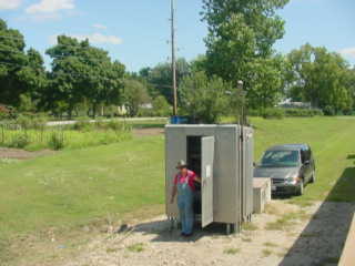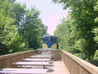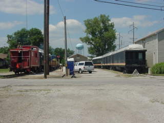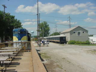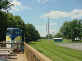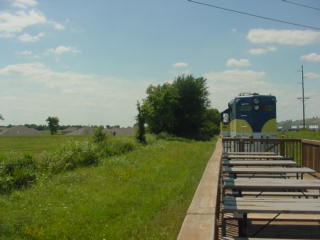 8/18/2008 I slept in and after breakfast, put all of yesterday's pictures into my computer and prepared the story before driving out to the Chris Guenzler Million Mile Lookout Point and working on the story. There were two BNSF freights, as well as a westbound BNSF track inspection train, which arrived at the same time as the eastbound Southwest Chief. I returned the rental car to Kirksville and was given a ride back to La Plata, then went back out to the Lookout Point and finished up the 35 mm film in that camera. Back at the Inn, I finished the Midland Railway story, relaxed and watched some television before catching up this story so far then had a well-deserved sauna tub bath. At 6:00 PM, I went to the Red Rooster for my final dinner in La Plata and was joined by Trainweb.com representative Ray Burns, who drove me to the Amtrak station at 7:35 for my journey home.