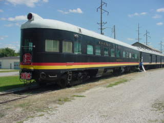Santa Fe buffet-parlour/observation car 1508 built by Pullman in 1926 and was re-built by the Topeka Shops into an Instruction Car. It is currently painted for the KCS for a "unified" static consist to match the Hospitality Car.