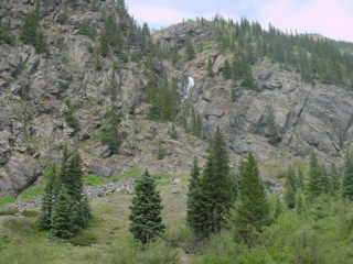 That same waterfall coming down from the slope to our west; there are three different views of this waterfall as the train proceeds to Silverton.