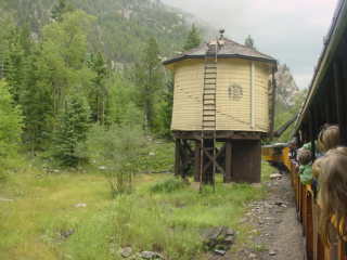 We passed the restored Needleton water tank and stopped to take water here from a former tank car.