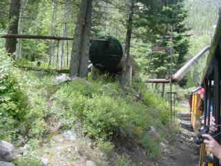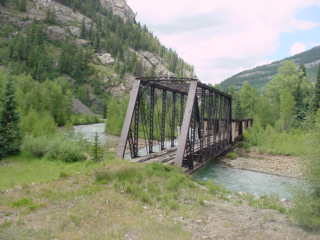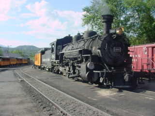 Rio Grande Southern C-17 2-8-0 42 built by Baldwin in 1887 as Denver and Rio Grande Western 420. It was sold to the Rio Grande Southern in 1916, re-numbered 42 and worked until the railroad was dismantled in 1952. In 1953, the engine was sold to the Narrow Gauge Motel in Alamosa, Colorado. In 1958, it was bought by the Magic Mountain Amusement Park in Golden, Colorado, where it was converted to burn oil and operated for a short time. In 1969 it went on display in Monument, Colorado, in front of a bank. In 1971, it returned to Golden as a restaurant display at Heritage Square. Finally in 1983, it was bought by the Durango & Silverton Railroad.