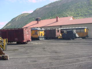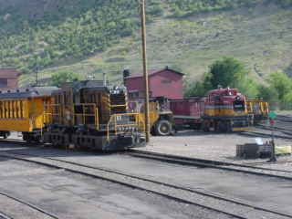 Durango and Silverton 98-ton center cab switcher 11 built by General Electric and United States Steel in 1950, which is used to switching trains in the yard. I detrained and walked back to the parlour car.