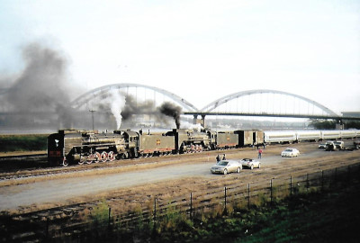 The two Chinese QJ's were on a side track waiting to pull forward then reversed down to our trainset for the last event of the weekend, a double-headed steam excursion to Iowa City.