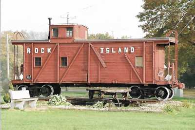 Chicago Rock Island and Pacific caboose 1703. It was built railroad in 1913 as a boxcar, converted to a caboose in 1940 and purchased from a museum in Adair, Iowa.