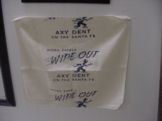 In the hallway of the hotel is this Axy Dent cloth bag of the Santa Fe.
