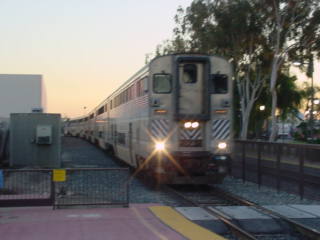 This time of year yields excellent post-sunset pictures after I enjoy a quick power walk down the Beach Trail to the San Clemente Pier station. Here I waited for Pacific Surfliner 785 to arrive in the dark and take me home. I kept on riding and on the Monday morning of the trip, December 29th, I rode a round trip to Solana Beach, taking a final ride with Conductor Woody Lamberth, who was retiring on January 1st, 2009. I want to thank him for the excellent service he has provided to everyone over the years and throughout my years of train riding. I will truly miss Woody in the future and hope he has a most excellent retirement.