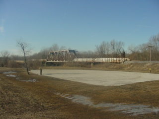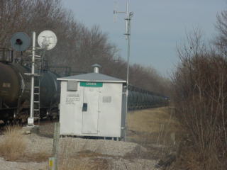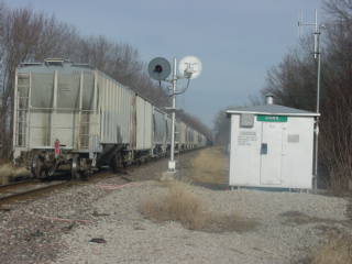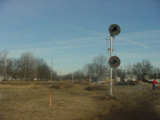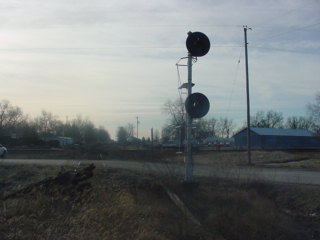 The northbound Wabash signal. We drove west across the bridges to the grade crossing and waited for two-and-a-half hours but had not a single train.