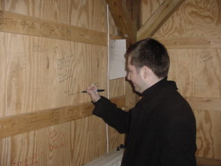 La Plata 12/31/2008I was picked up and taken to the Depot Inn & Suites and given Room S then down to the Chris Guenzler Million Mile Lookout Point where I accessed the Internet and cleared out my e-mail before reading USA Today as I waited for any freight train action. I then checked the building's walls to see where people had come from who signed the walls. 22 states, the District of Columbia and three countries - Canada, Australia and Holland. I then walked over to the TrainParty.com building and left a Million Mile DVD set for Ray Burns before returning to the lookout point.