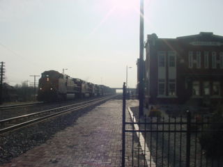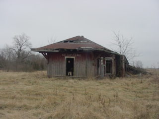 Chillicothe, MO. Bob and I enjoyed a good lunch in the station and we learnt from a Illinois, Chicago and Eastern track crew that an eastbound train would be arriving in less than an hour so took off south then went west, finding the tracks at Dawn.
