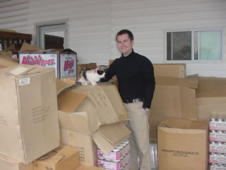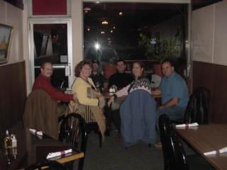 Here is Matt petting that wonderful cat that loved me and I really wanted to take him home but did not. We returned to the Depot Inn & Suites and relaxed for a while. After 6:00 PM, we all met in the lobby and the Marshall's, Cox's, Steve, Matt and I all climbed into Bob's van and drove to the Wooden Nickel in Kirksville for dinner.