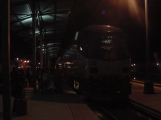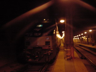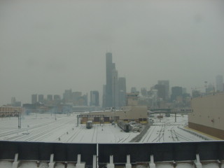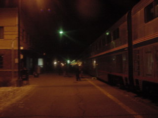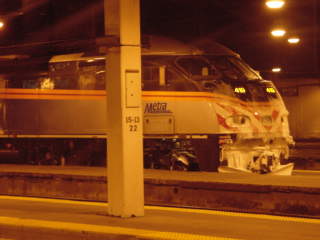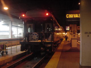 Chicago 1/1/2008I was off to the Metropolitan Lounge and stored my bags then went for a walk around the station finding most stores closed. Back in the warmth of the lounge, I recharged the camera batteries as I relaxed on the first day of 2008 which was Day 4,731 of my Sobriety. My first musical choice of the year was Ted Nugent's "Full Bluntal Nugity", followed by the Poxy Boggard's "Larger than Life" then Frank Zappa's "Apostrophe". I bought a cinnamon roll and mailed a postcard as I waited for the westbound Empire Builder to board. The conductor took my ticket before boarding commenced and two trains, the California Zephyr and the Texas Eagle, were called first.