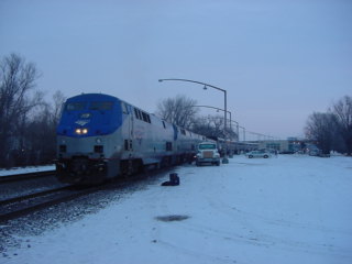 1/1/2008 Happy New Year 2008! I awoke at 7:30 AM, dressed and proceeded directly to dining car 37004 that had just made its last call. I ordered French Toast and pork sausage patties as the train sped north across the snowy Illinois landscape south of Kanakee. I had another much-needed shower since I would be able to have one until Thursday when I was on the Coast Starlight.