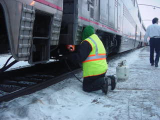 I had the opportunity to see the ground crew thawing out the train. Queensryche's "Empire" started out what I thought would be a long day of white heading west when we departed at 9:10 AM {9:00 AM}.