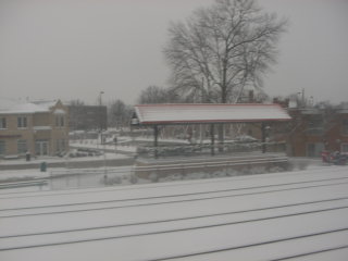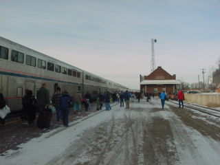 Just before the Homewood station stop, I spotted the Homewood railfan viewing platform. I must say tha ton a day like this, I would prefer the nice, warm and enclosed "Chris Guenzler Million Mile Lookout Point" at the Depot Inn & Suites in La Plata, Missouri. I read the New-Gazette, a morning paper from Champaign which had a definite trend towards the University of Illinois Illini in the article on their game with the University of Southern California Trojans back home in the Rose Bowl.