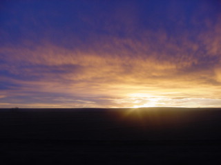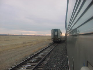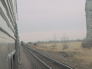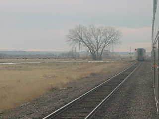 Between Minot and Stanley, with Keith Emerson's "Hammer it Out" as my next musical choice, the snow began to disappear so it was obviously above freezing. The Empire Builder made a stop west of Stanley at Ross due to sticky brakes on the dining car, but the crew must have fixed the problem as we started rolling west again.
