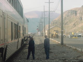 The Shelby, Montana fresh air stop. ABBA's "Sweet Dreams Are Made Of This!" was the next CD for this evening and I stretched out across the two seats then slept to Whitefish, where my seat mate returned so I went to the lounge car and stretched out on the floor along the window and went to sleep.