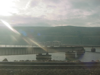 The Deschutes River joined the Columbia River before our next station, and last fresh air stop of the trip, at Wishram.