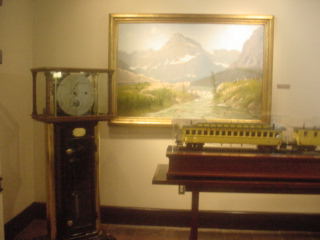 An official clock and model of the William Crook steam engine, the first engine of the Northern Pacific Railway.