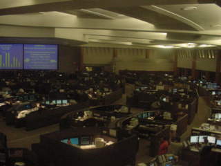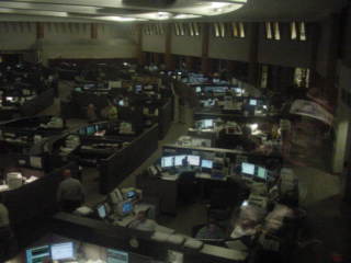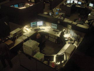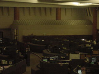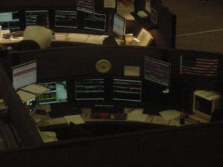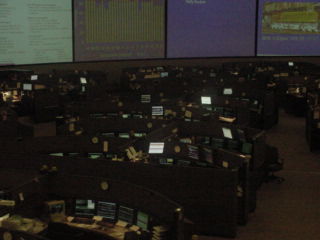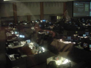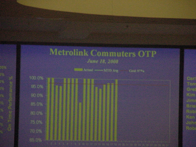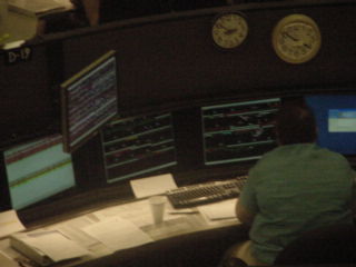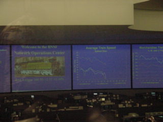 Down below are 91 dispatching cubes that handle most of the BNSF Railway. There are joint local offices with the Union Pacific Railroad in San Bernardino, California; Springs, Texas; and Kansas City, Missouri. Overhead screens were updated by the minute of facts and other information with regard to railroad operations.