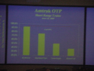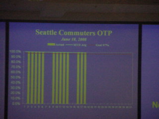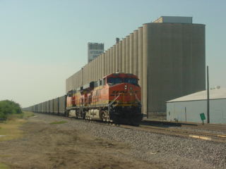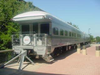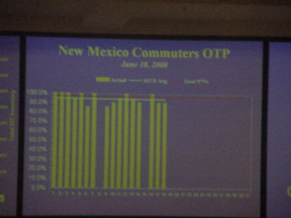 We went out onto a bridge enclosed by glass and below us was former business car "Canadian River". We were then led into a room with curtains on one side and sat around a large table where a film aboute History and People of the BNSF Railway was shown and I learned several new items. At the end of the program, the curtains opened to reveal below the BNSF Network Operations Center, also known as the BNSF Dispatching Center in Fort Worth, Texas.