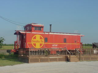 At Ponder, Texas we took time to ponder as we photographed Santa Fe caboose 999554, nee Santa Fe 1764 built by America Car and Foundry in 1929, now serving another use then proceeded to Gainesville, Texas where we stopped for a buffet dinner.