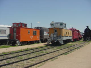 Colorado and Wyoming caboose 3 built by Colorado and Wyoming from a locomotive tender and Denver and Rio Grande Western caboose 01432 built by the Denver and Rio Grande Western in 1944.