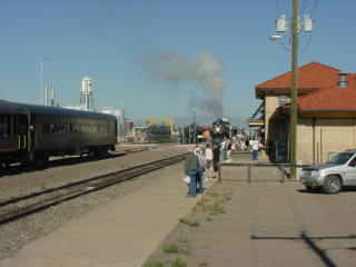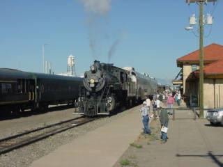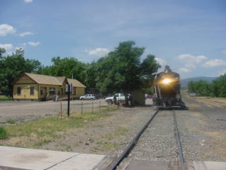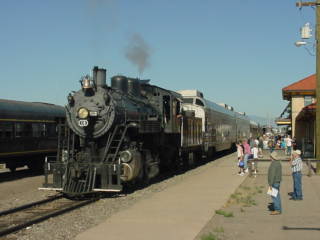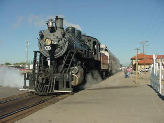 After I arose, had breakfast and worked on stories, I checked out of the Best Western Alamosa Inn and met Bob Riskie and Chris Parker at the car then we drove to the railroad's station to pick up our tickets then went outside to wait for our steam train to La Veta to board.