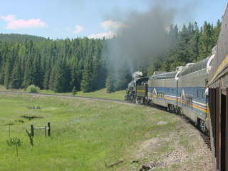 The Rio Grande Scenic Railroad offers Scenic Excursions throughout the summer, where passengers can ride from Alamosa to La Veta and back, through some of the most beautiful scenery the Rocky Mountains has to offer. You'll have a chance to ride through rugged mountain terrain, all in the comfort of a first-class, air-conditioned passenger car. You will have a bit of time to enjoy all the charming town of La Veta, before boarding the train again for the ride back to Alamosa. On board, you can order from a full menu and enjoy the view from the domed passenger car, or venture to the open car to breathe in the fresh mountain air.