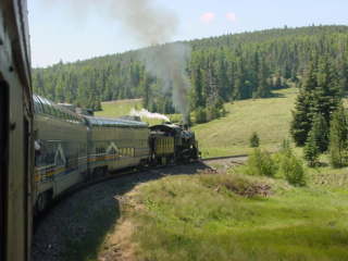 A hard-working steam engine, dome cars, a beautiful summer's day and the Colorado scenery - what could be better?
