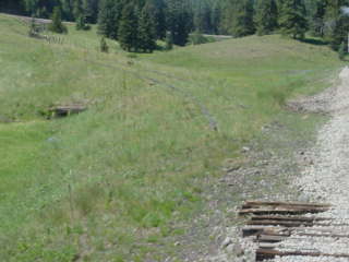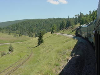 In 1899, after years of unsuccessful surveying, a route was worked out. The narrow gauge route had 4 percent grades and Mule Shoe Curve. The line was moved seven miles south, with standard gauge rail replacing narrow gauge rail over La Veta Pass and into Alamosa. The new route had no more than a 2.5 percent grade, with the help of a tight horseshoe curve, on the west side. The east side required a 3 percent grade in one section, trestles, and three tunnels. In 1929, one tunnel caught fire and caved in. The railroad cut through the tunnel roof along its length so it was daylighted. Today, these same standard rails are used for the Rio Grande Scenic Railroad.