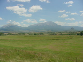 The beautiful Cucharas Valley with the butte and the Spanish Peaks.